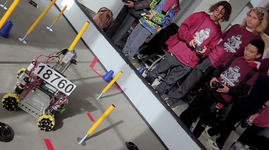 A permanent robotics lab with a full competition-style field will give students a truly authentic practice environment. Currently, our temporary setup consists of a few tiles on the floor (first photo). In contrast, the Don Bosco Academy lab (second photo) features a regulation field with boundaries, floor markings, and obstacles for robots to navigate. The difference is night and day.